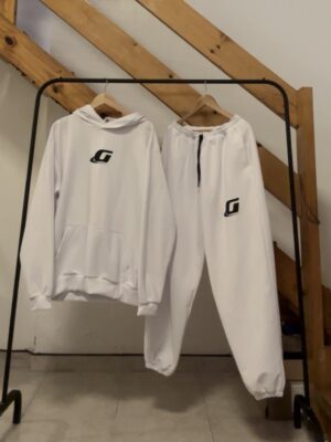- CONJUNTO blanco (buzo + jogger) con capucha y bolsillo canguro.