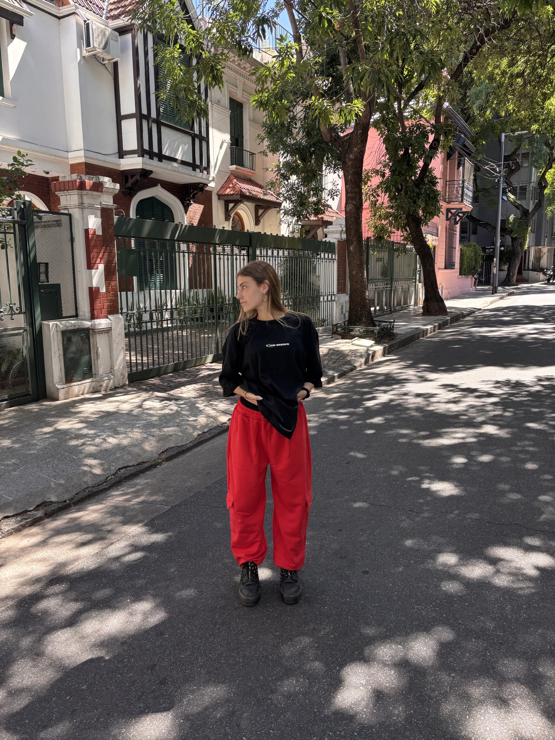Este jogger rojo oversize basico es ideal para quienes buscan comodidad y estilo. Confeccionado con algodon peinado, que proporciona un tejido suave y resistente para cualquier movimiento, desde una salida casual, una clase de danza o un día de descanso en casa. Su diseño amplio y relajado brinda una gran libertad, permitiéndote disfrutar de todo el confort que tu cuerpo necesita sin sacrificar el estilo.