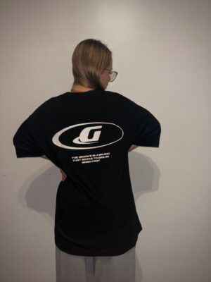 Remera estilo oversize en tela importada de algodón con excelente calidad, color negro, detalle de estampa su frente (logo) y de atras (diseño) con tecnica serigráfica, en color blanco. Disponible en L y XL. Referencia la modelo está usando un XL combinado con nuestro jogger cargo titanio. Otros colores disponibles negro y gris oscuro.