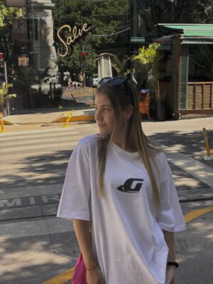 Remera estilo oversize en tela importada de algodón con excelente calidad, color blanco, detalle de estampa su frente (logo) y de atras (diseño) con tecnica serigráfica, en color negro. Disponible en L y XL. Referencia la modelo está usando un XL combinado con nuestro jogger cargo titanio. Otros colores disponibles negro y gris oscuro.